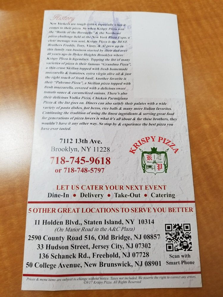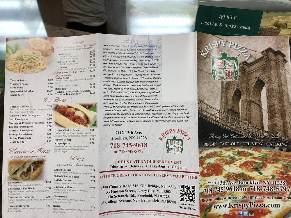 Krispy Pizza, located in Brooklyn, NY, offers a variety of pizza options including vegan and vegetarian choices. The menu features unique slices like Palermo and Sweet Ricotta, with a crispy crust and flavorful toppings. Customers rave about the friendly service and quick preparation of their orders. The pizzeria provides a casual dining experience with the option for takeout and delivery. The establishment also accepts various payment methods including Apple Pay and cryptocurrency. While some customers have noted preferences for thinner crusts, the overall consensus is positive, with many patrons expressing a desire to return and try more offerings. Krispy Pizza stands out as a standout pizzeria in the neighborhood, providing a satisfying pizza experience for both locals and visitors alike.